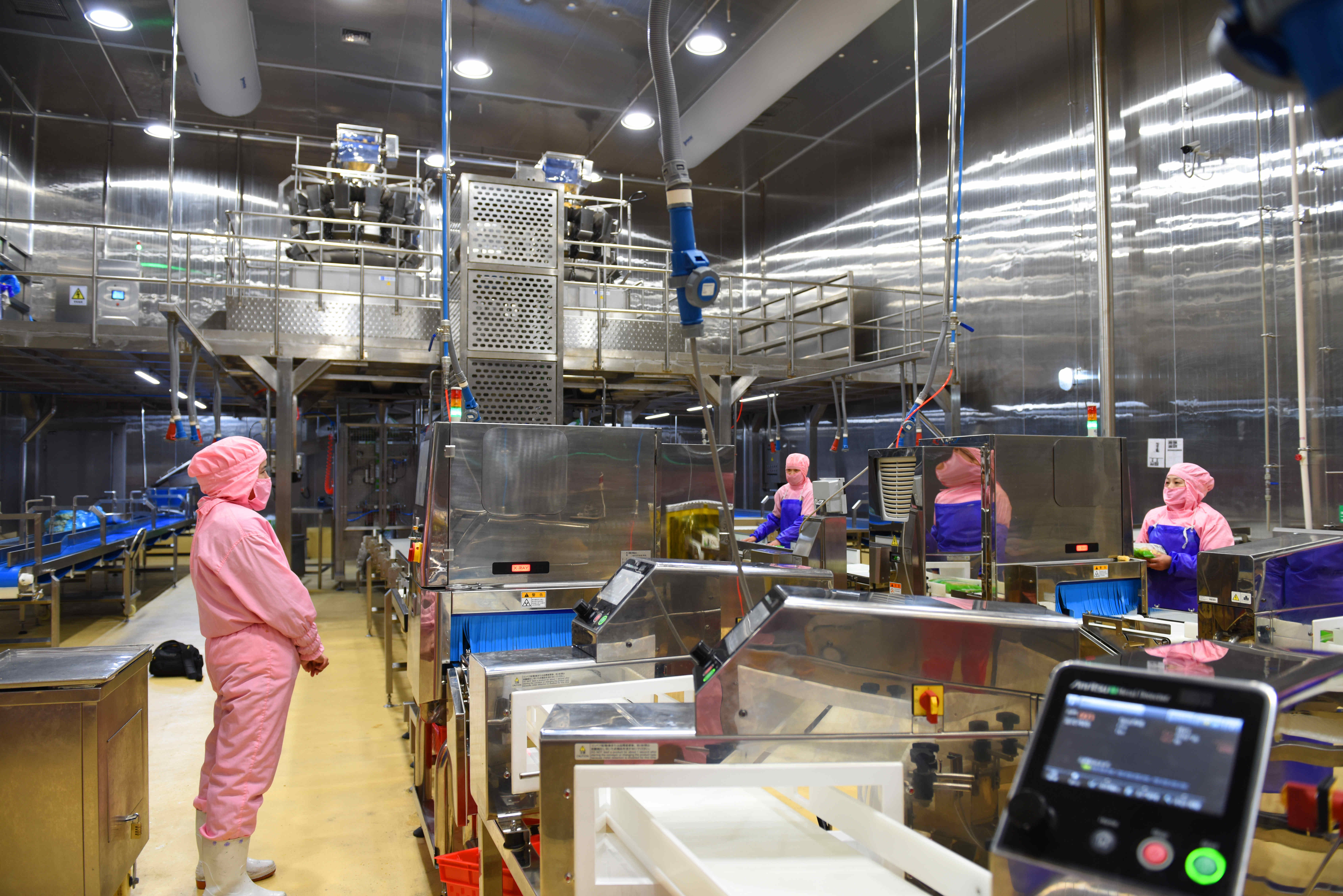 3日,走进新葡的京集团3512vip集团第四宰杀加工生产厂区,进口的自动化生产设备有序运行,200多名工人戴着口罩,忙着分拣、包装……