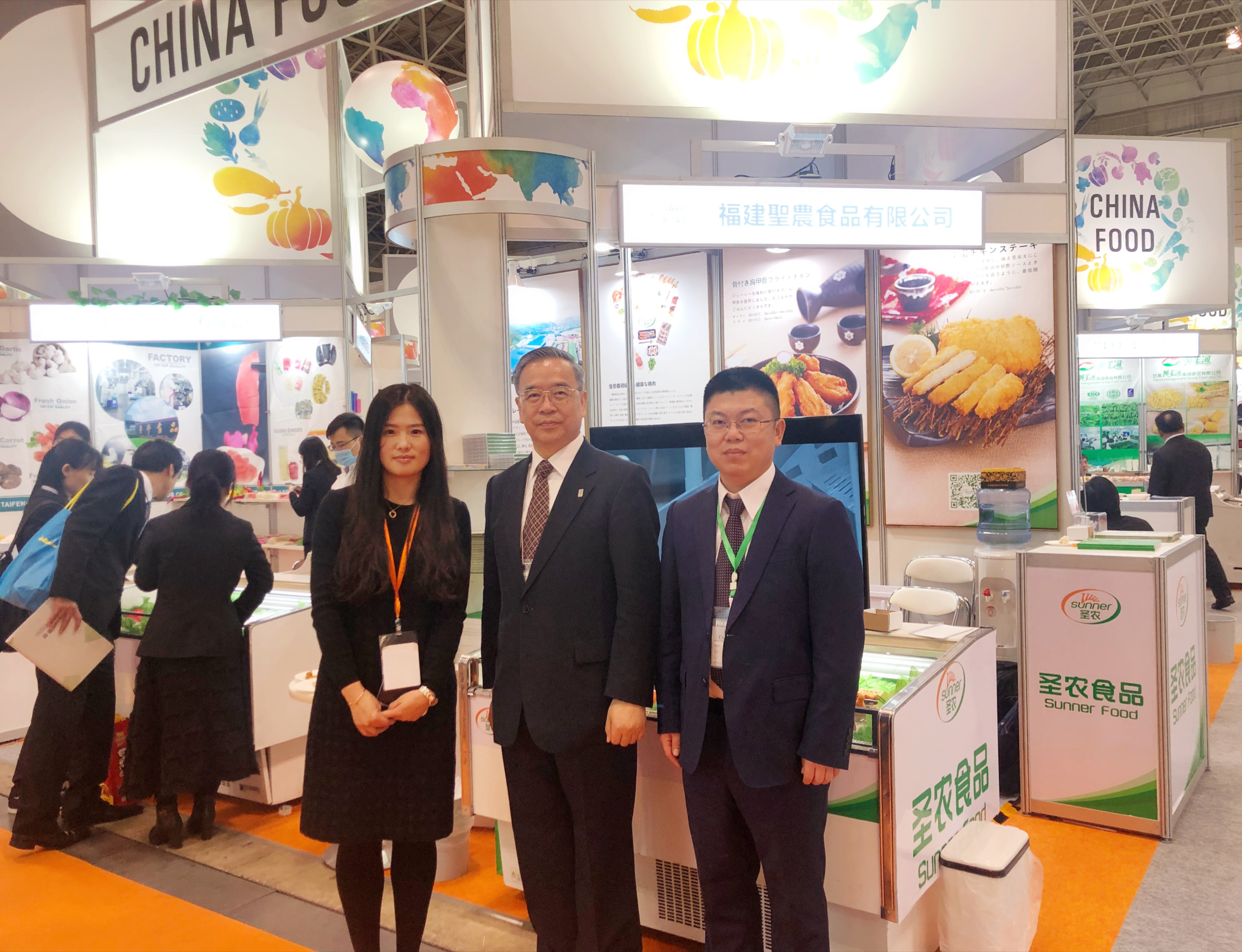 来自中国的美味食品不仅收获了现场参观者的热烈反馈,更得到了中国驻日本大使馆前商务公使、日本经济学会副会长吕克俭先生的关注。实际上,依靠着自身全产业链模式的优势与严格的质量把控标准,新葡的京集团3512vip自2009年就已取得对日热加工产品的出口资质,向日本输出高质量的深加工鸡肉食品,并在生产技术、生产环境、企业管理等方面不断精进,持续提供更好的食物。